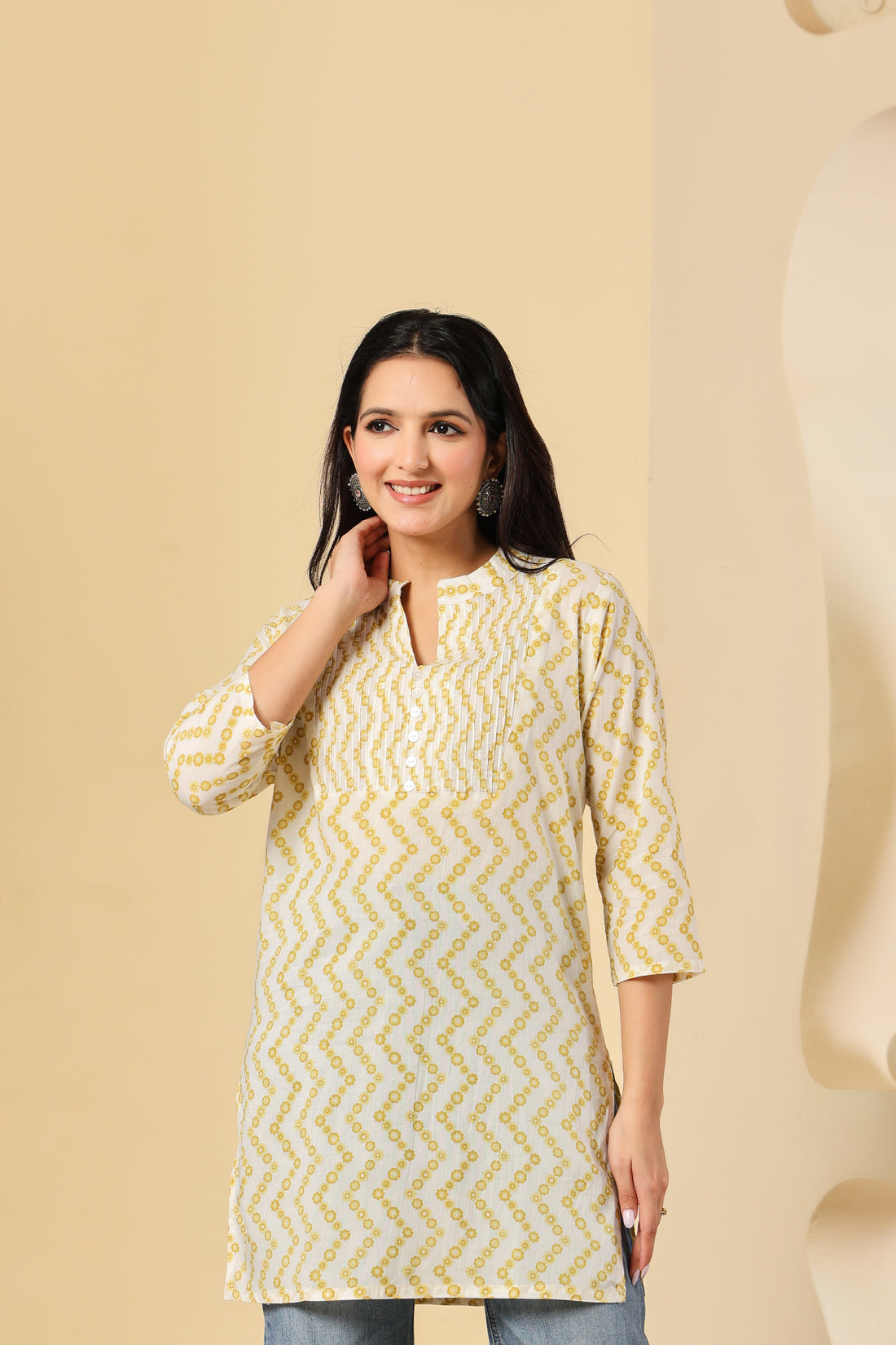 Yellow Zig-Zag Printed Cotton Kurti for Women