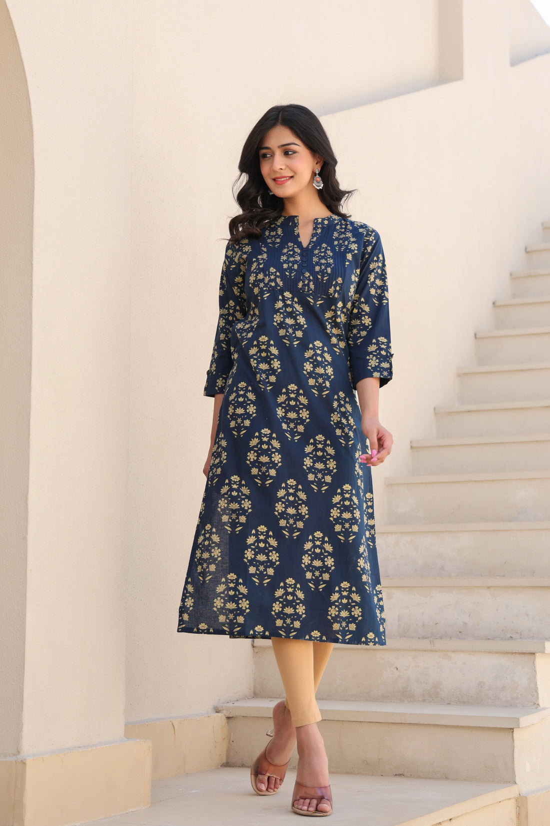 Blue Straight Cotton Kurta Pant Dupatta Set