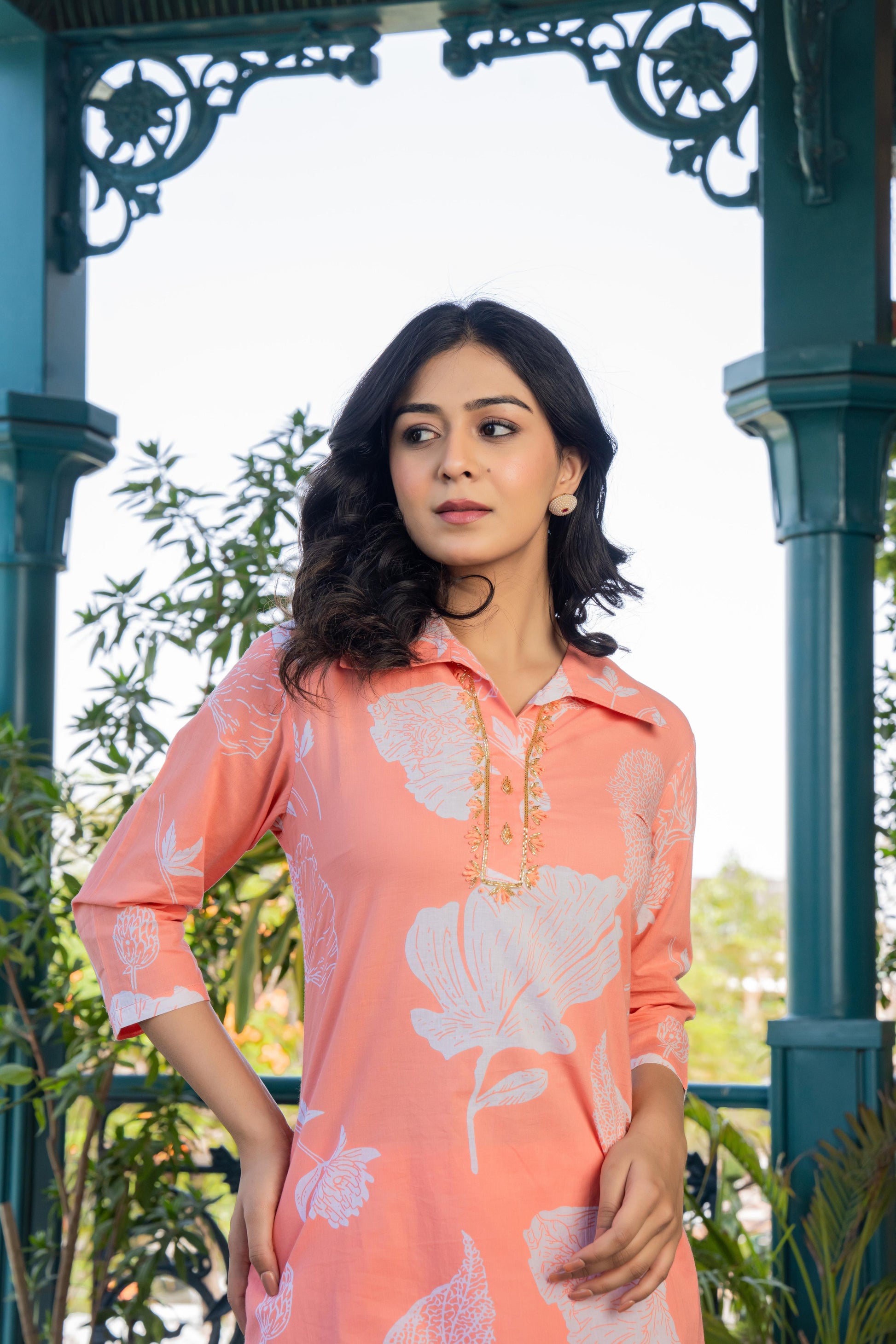 Peach Pure Cotton Co-Ord Set With Beautiful Adda Work