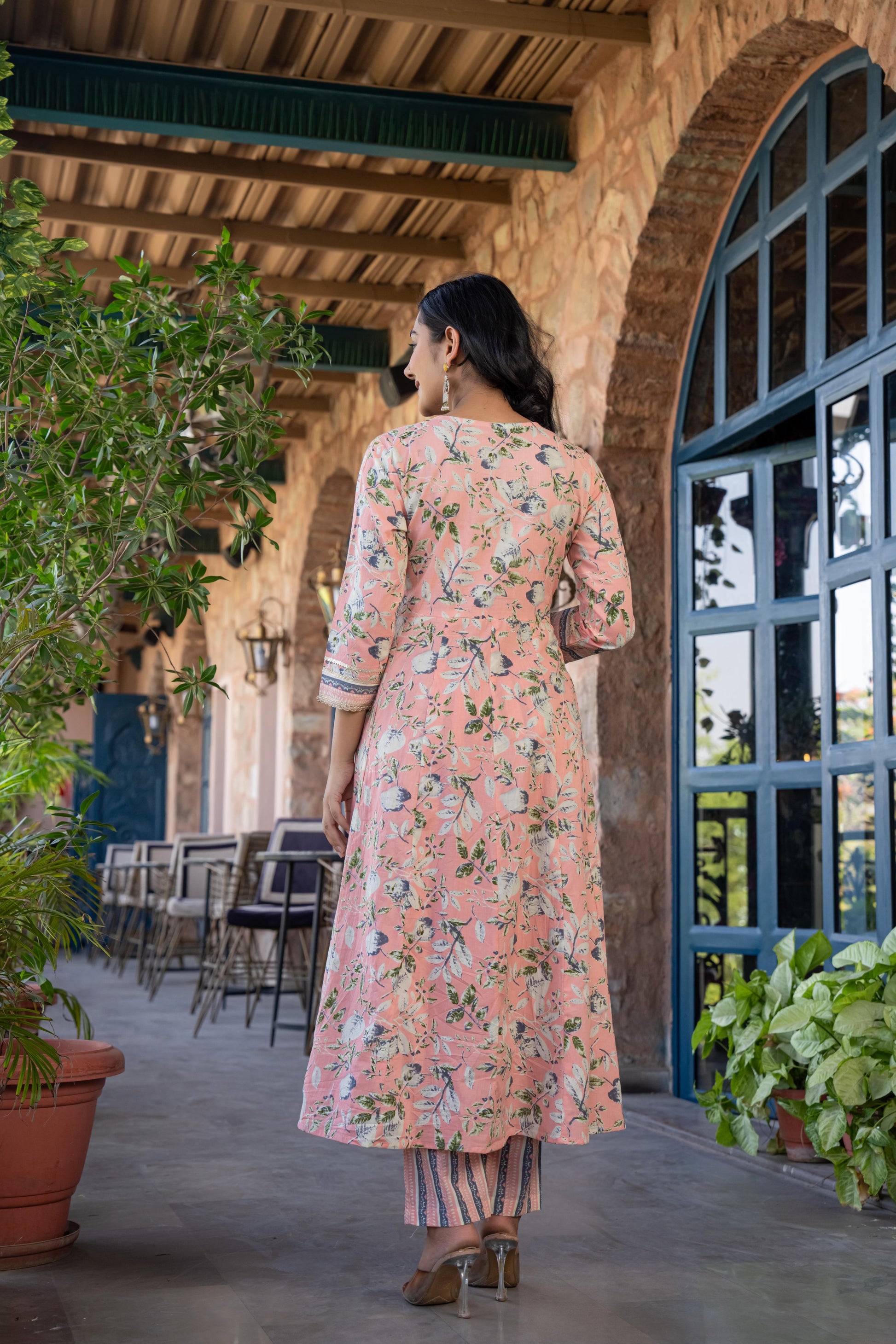 Mehira Peach Women's Cotton Kurta Set with Dupatta