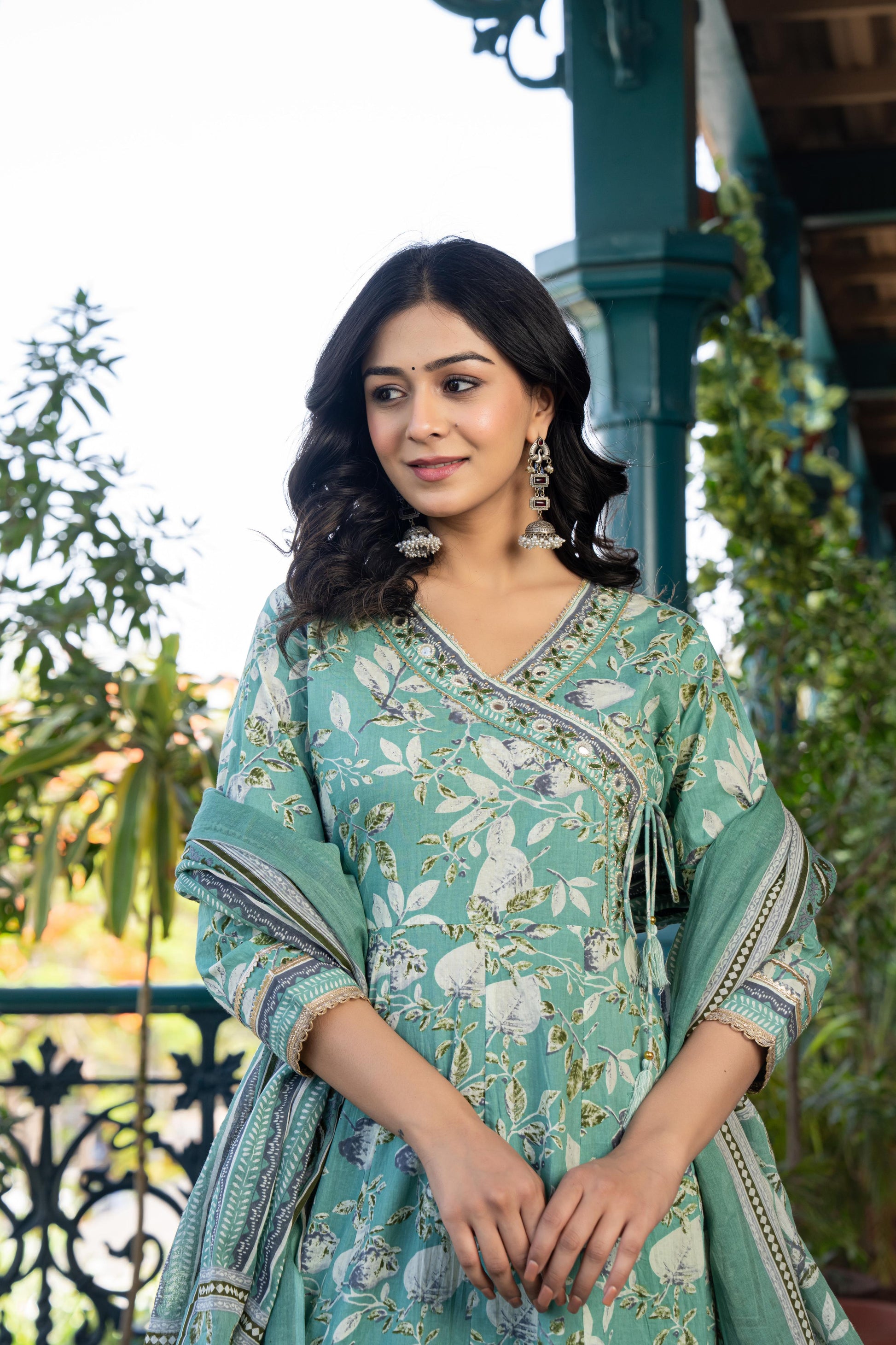 Mehira Green Women's Floral Cotton Kurta Set with Dupatta