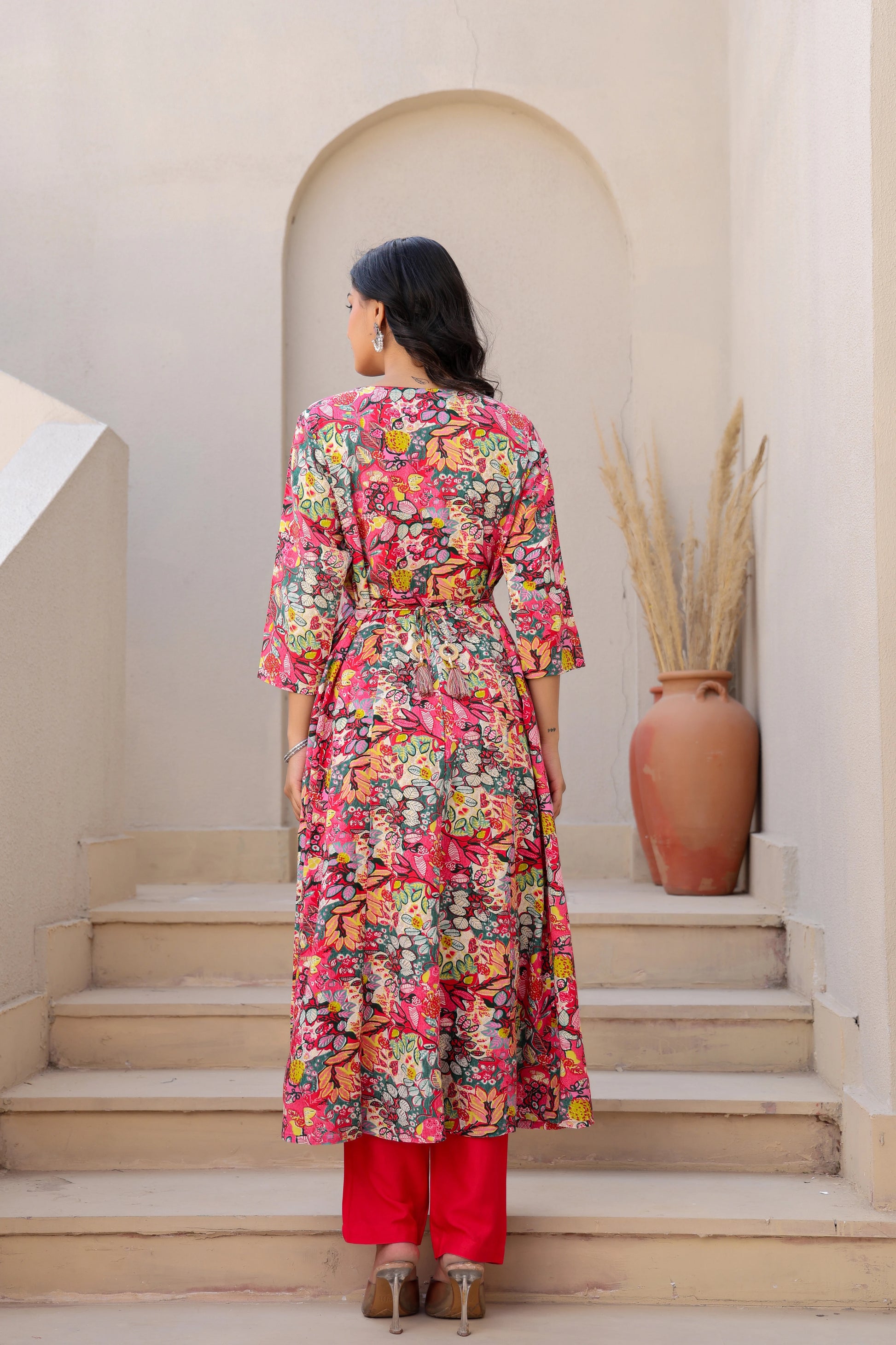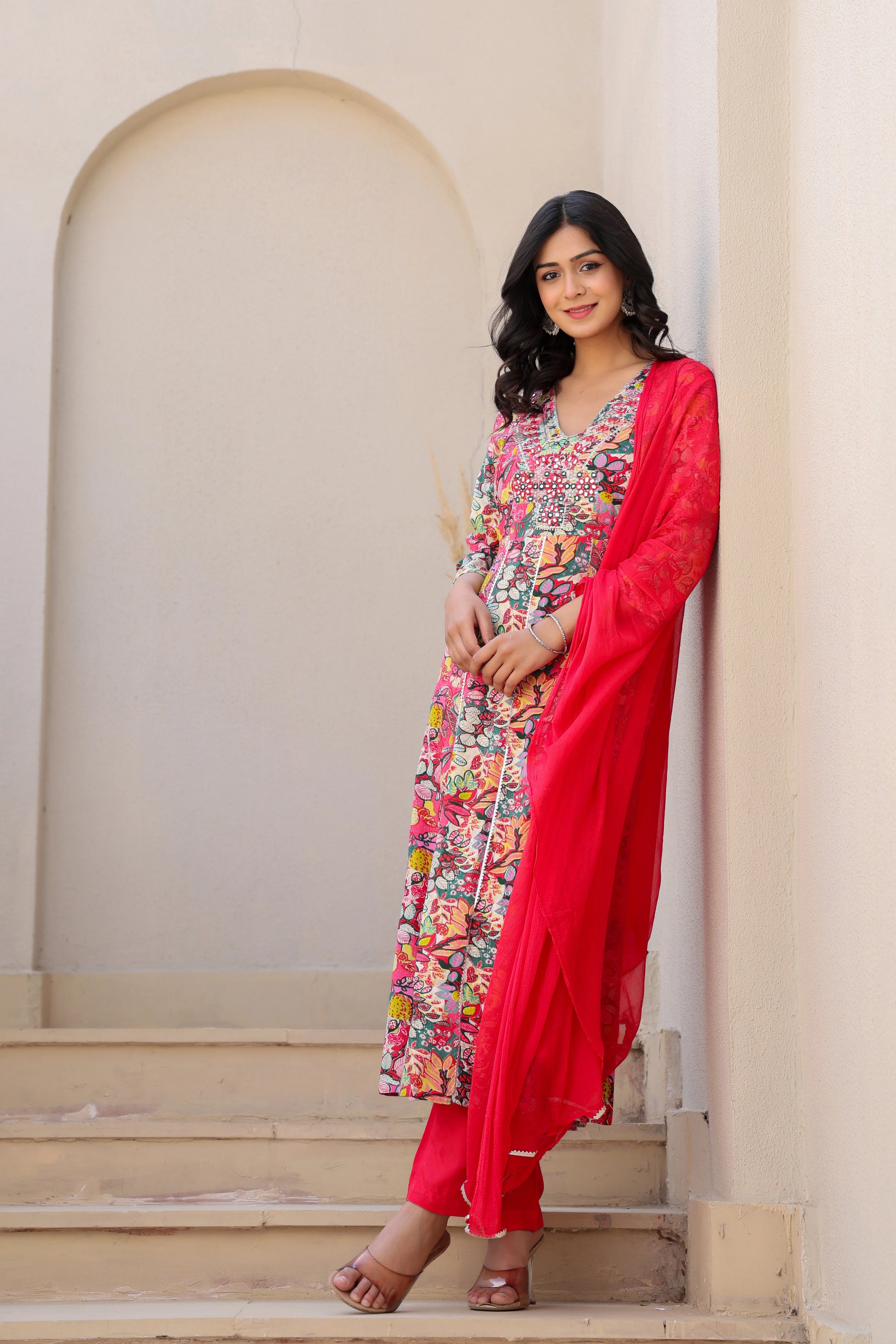 Multicolour Heavy Embroided Kurta Set with Dupatta