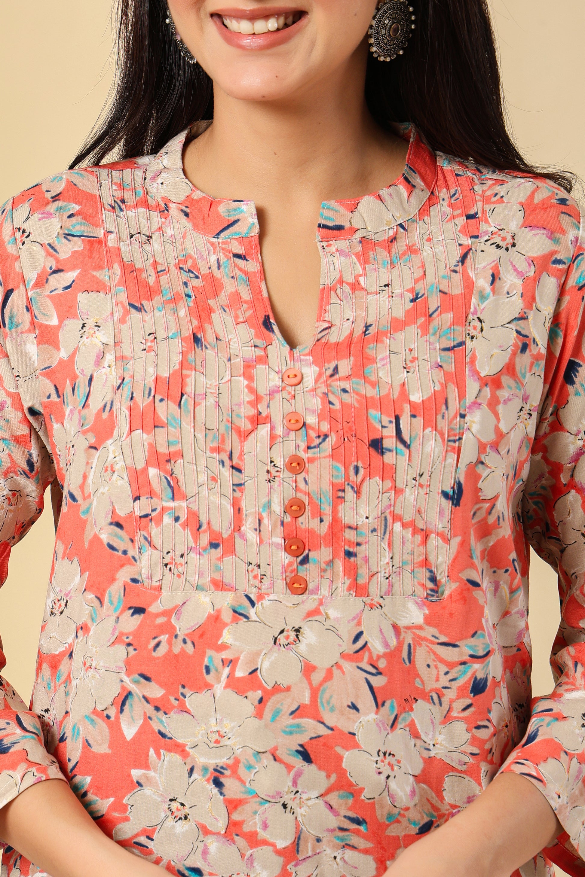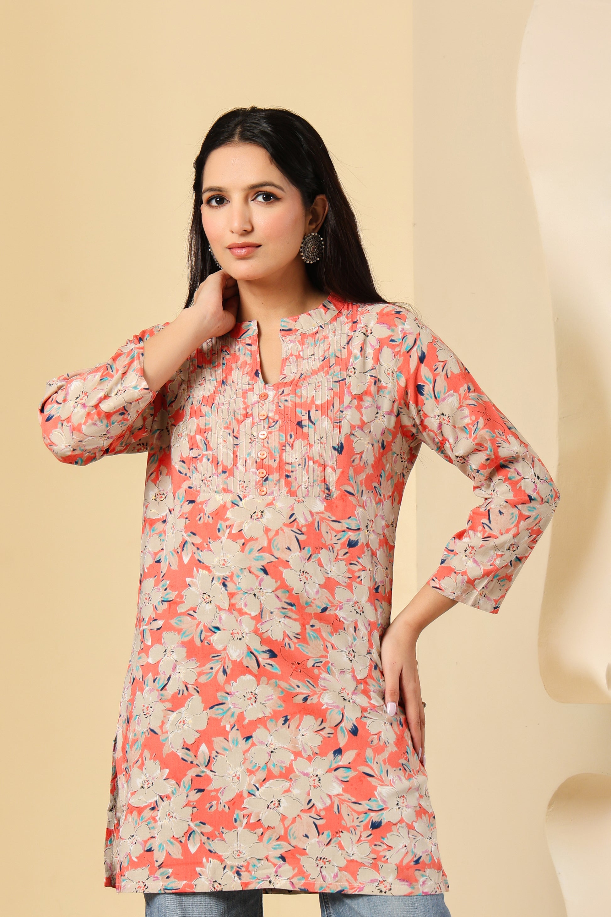 ✨ Elegant & Fresh: Beautiful peach base adorned with delicate floral prints for a graceful everyday look.
