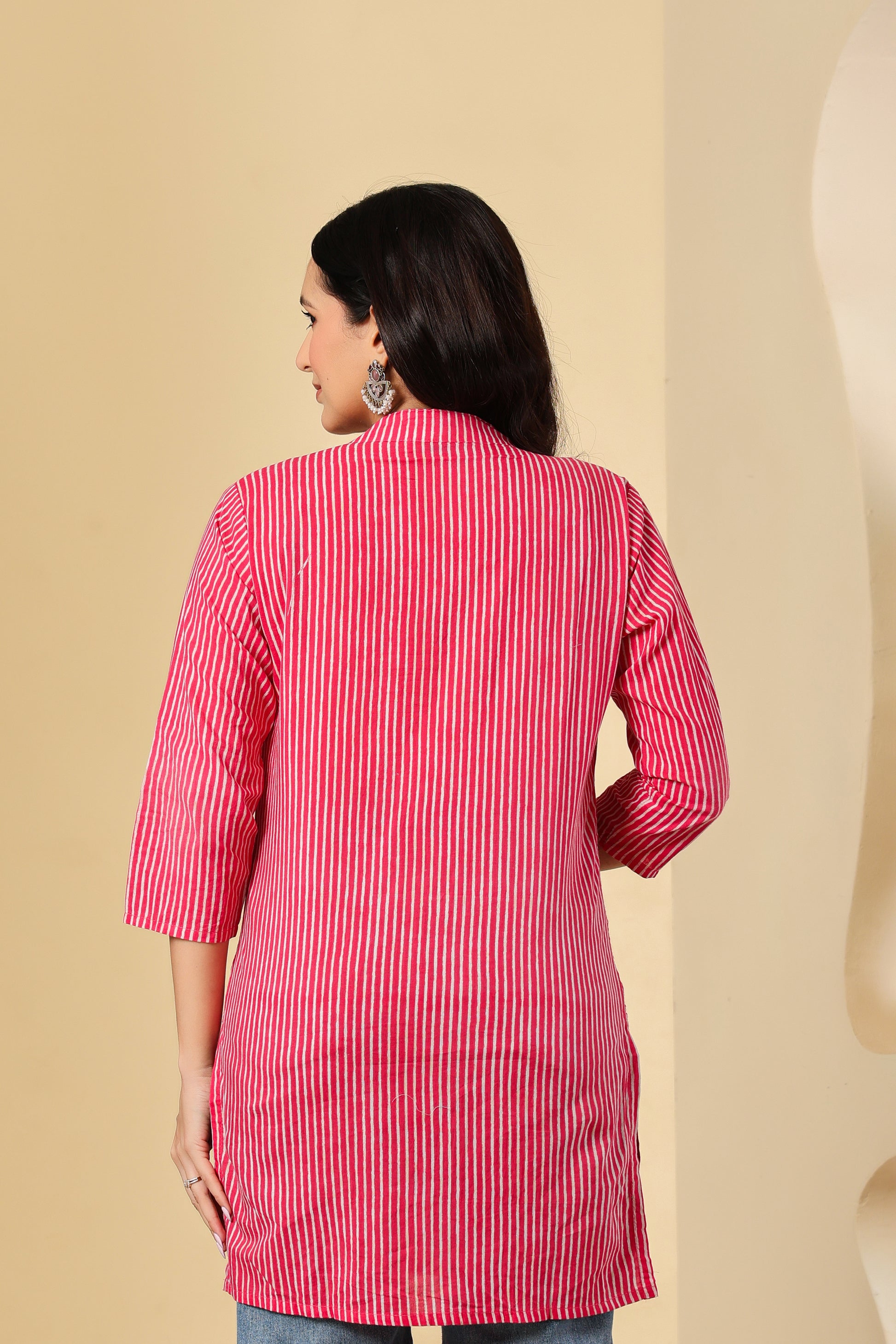 👗 Modern Cut: Straight-fit short kurti with a smart notched neckline and buttoned placket.