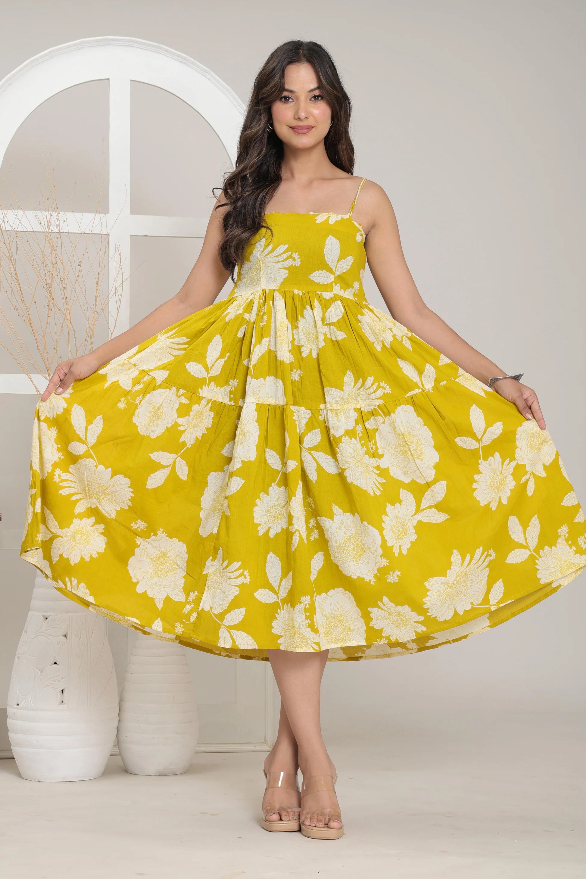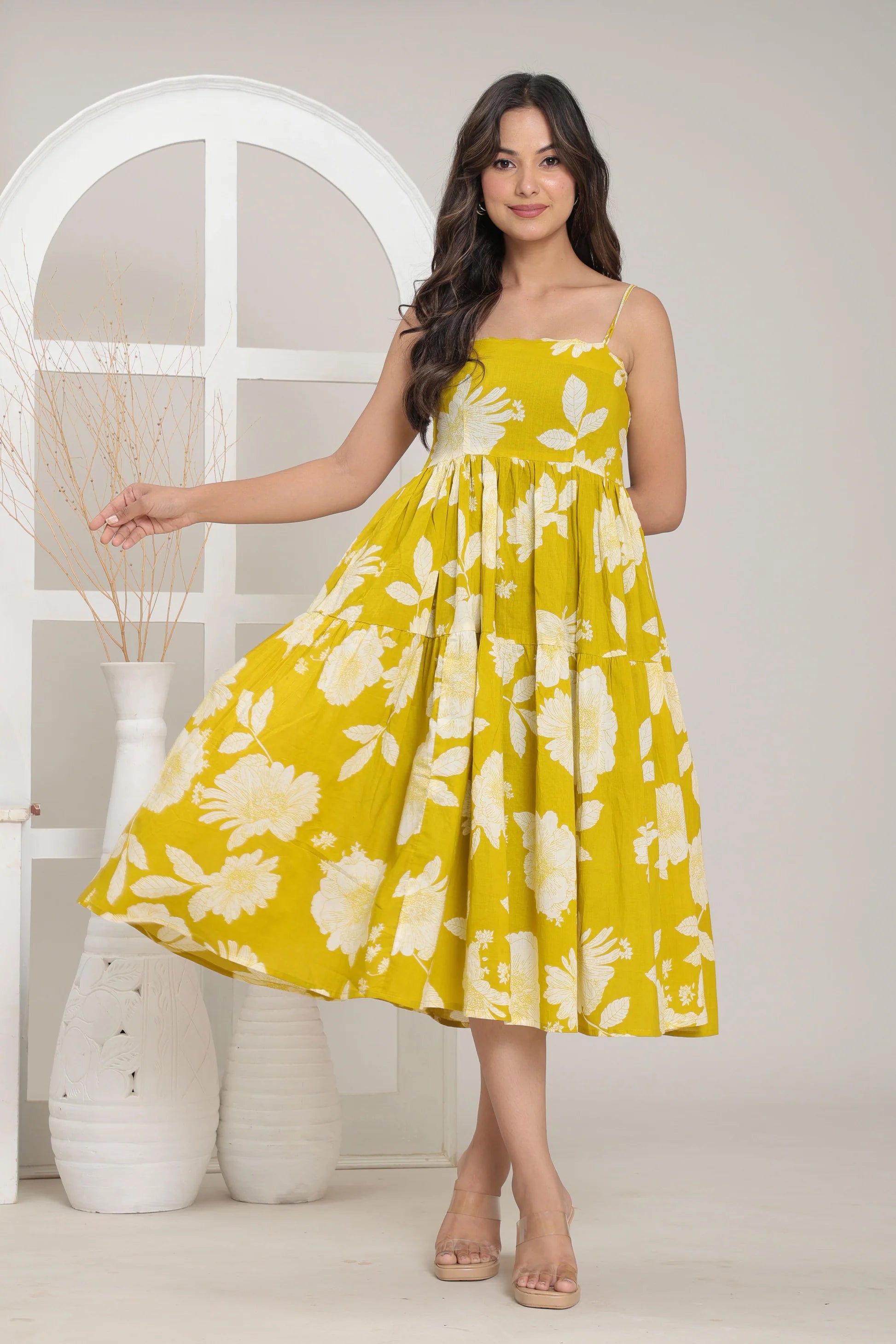 Sunny Bloom Tiered Midi Dress