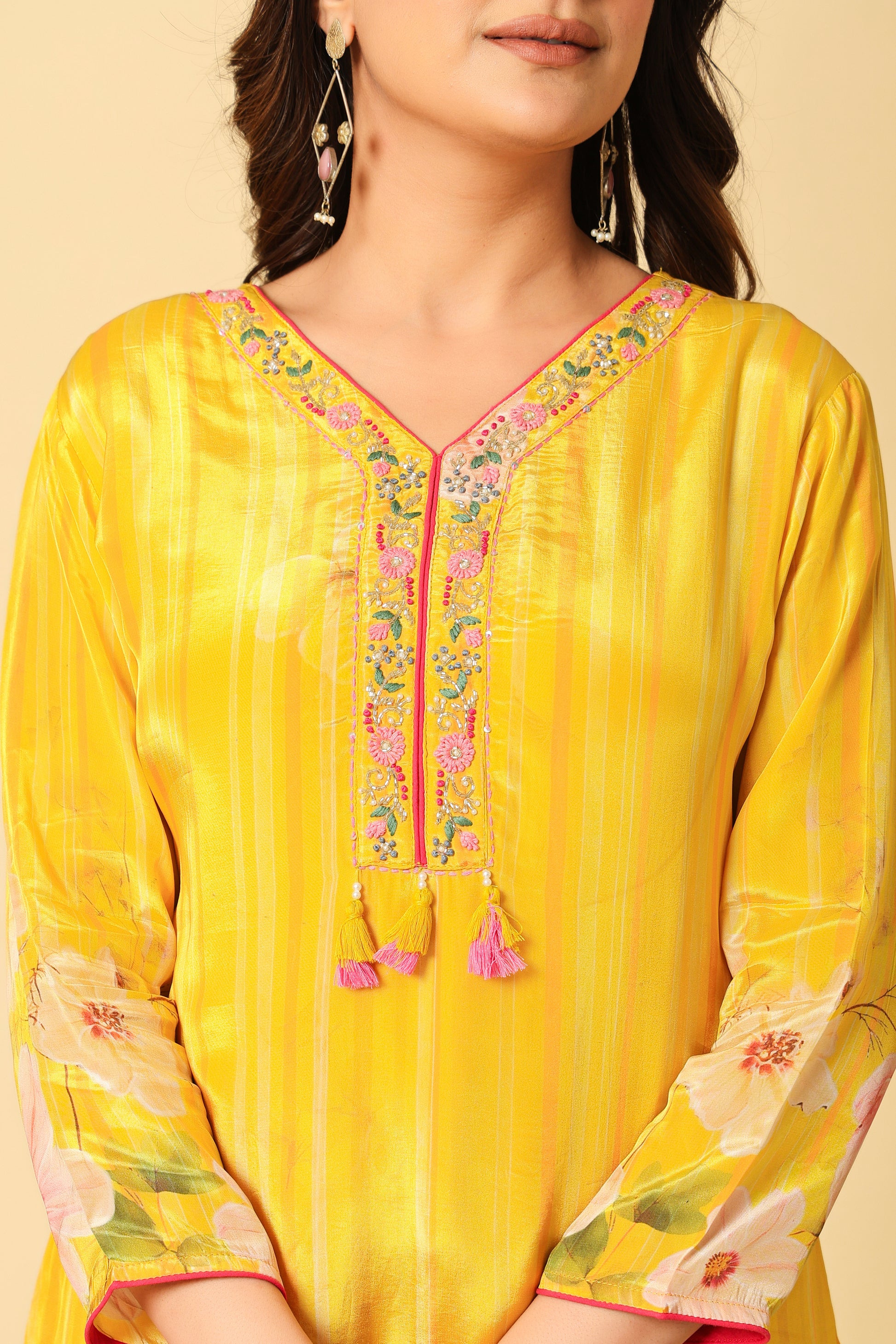Sunshine Yellow Floral Kurta Set with Dupatta – Festive & Elegant Look