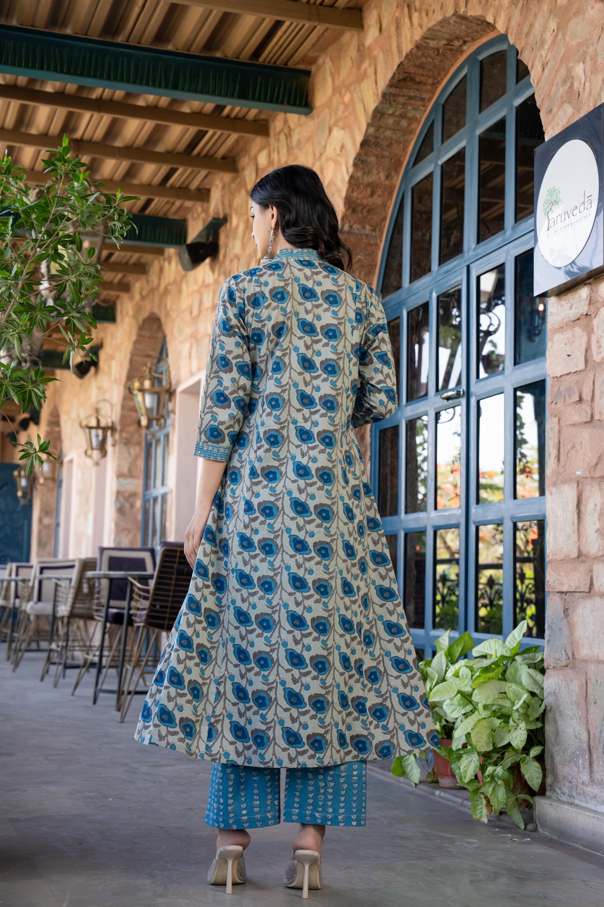 Bring freshness to your ethnic collection with this blue floral printed cotton kurta set, featuring a Beautifully Thread Work on Neckline & Sleeves. Paired with a matching printed palazzo and soft dupatta, it’s perfect for everyday elegance and casual festive wear.