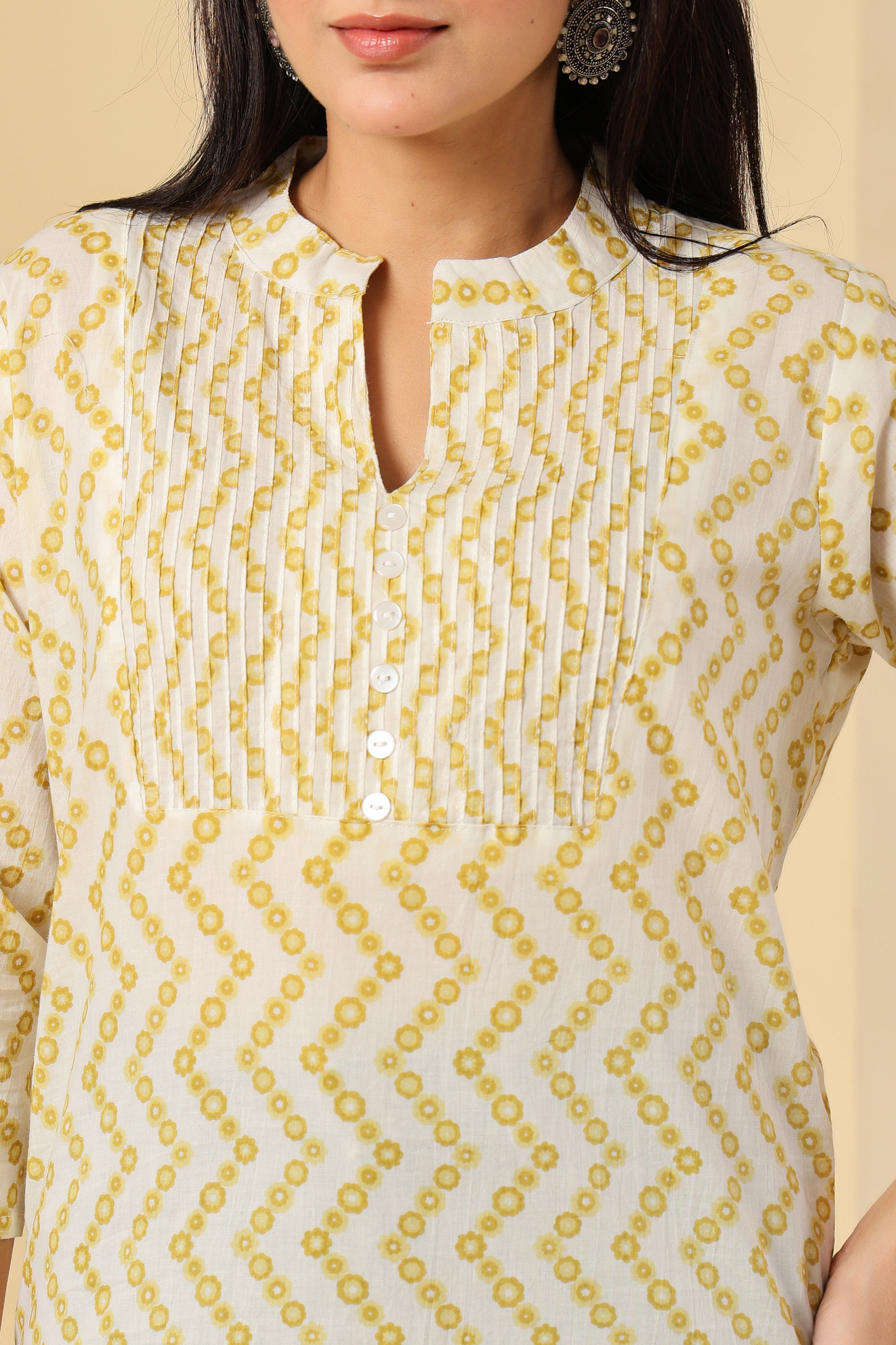 Yellow Zig-Zag Printed Cotton Kurti for Women