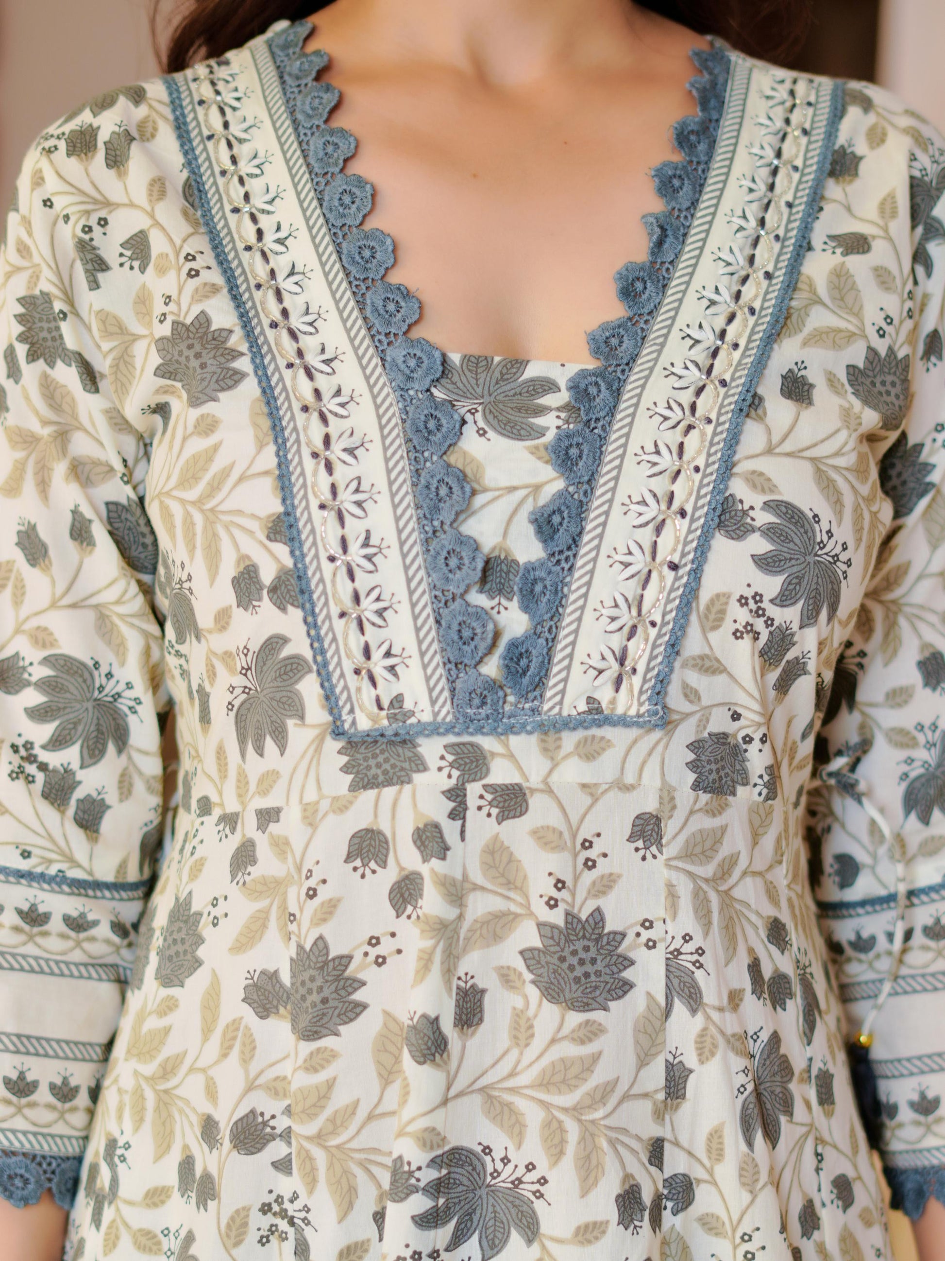 Ziyaana:- Women's Cotton Anarkali Kurta Set with Dupatta | Heavy Embroidered Neck & Sleeves
